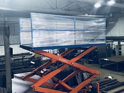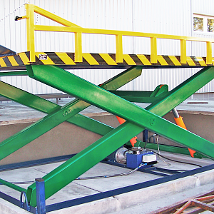 Ножничный стол способен поднимать грузы весом до 5 тонн на высоту от 95 см до 15 м.